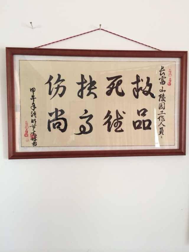 2014年5月20日上午,80岁的施老手里拿着一幅亲手写的牌匾,走进长富山陵园办公室。